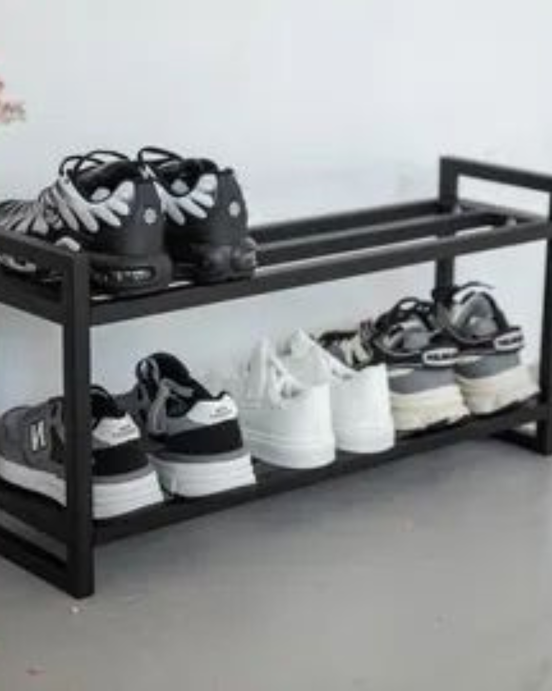 Strong and stylish metal shoe rack designed to organize multiple pairs of shoes neatly in your home.