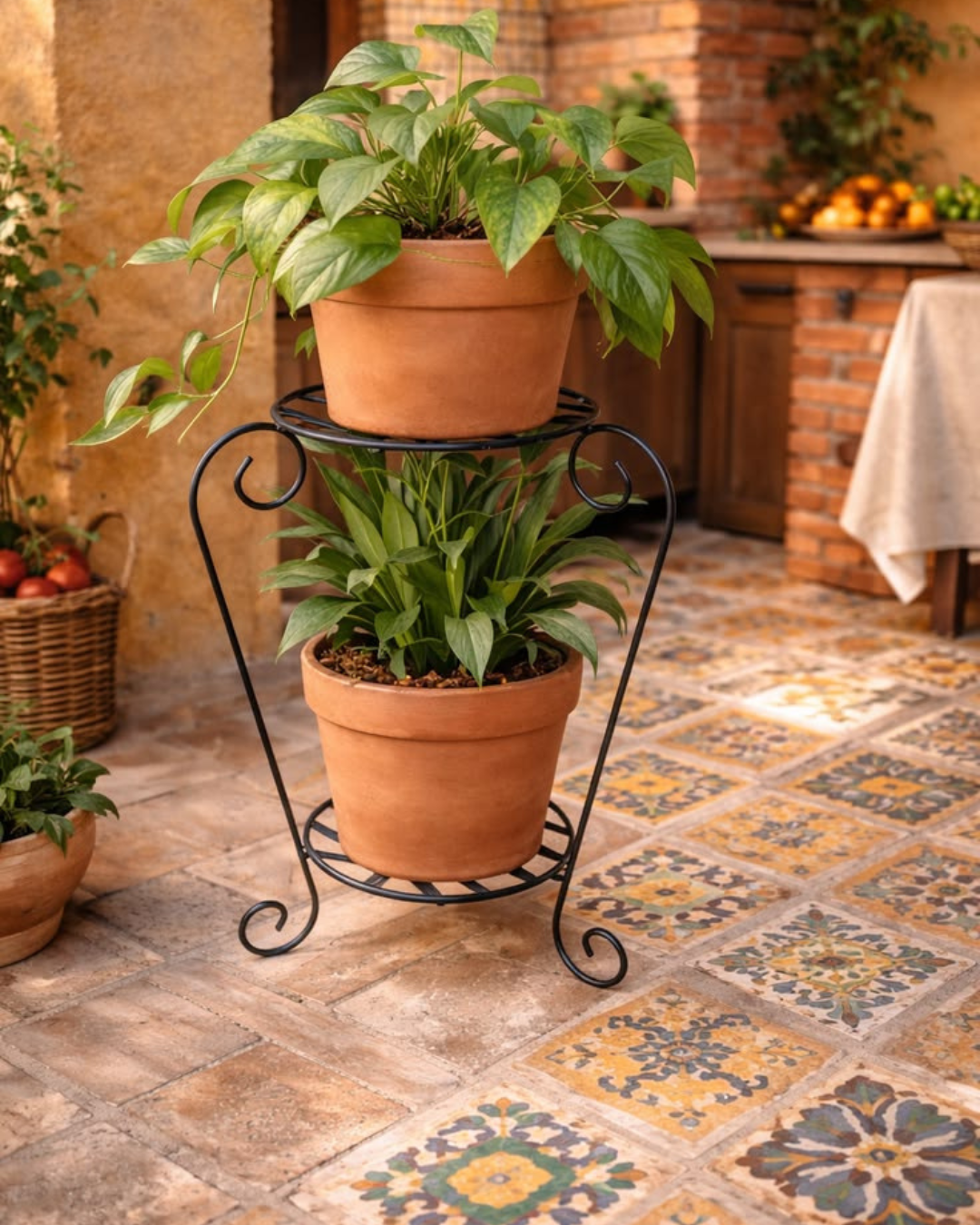 This decorative plant stand allows you to place two flower pots vertically, making it perfect for stylish plant display.