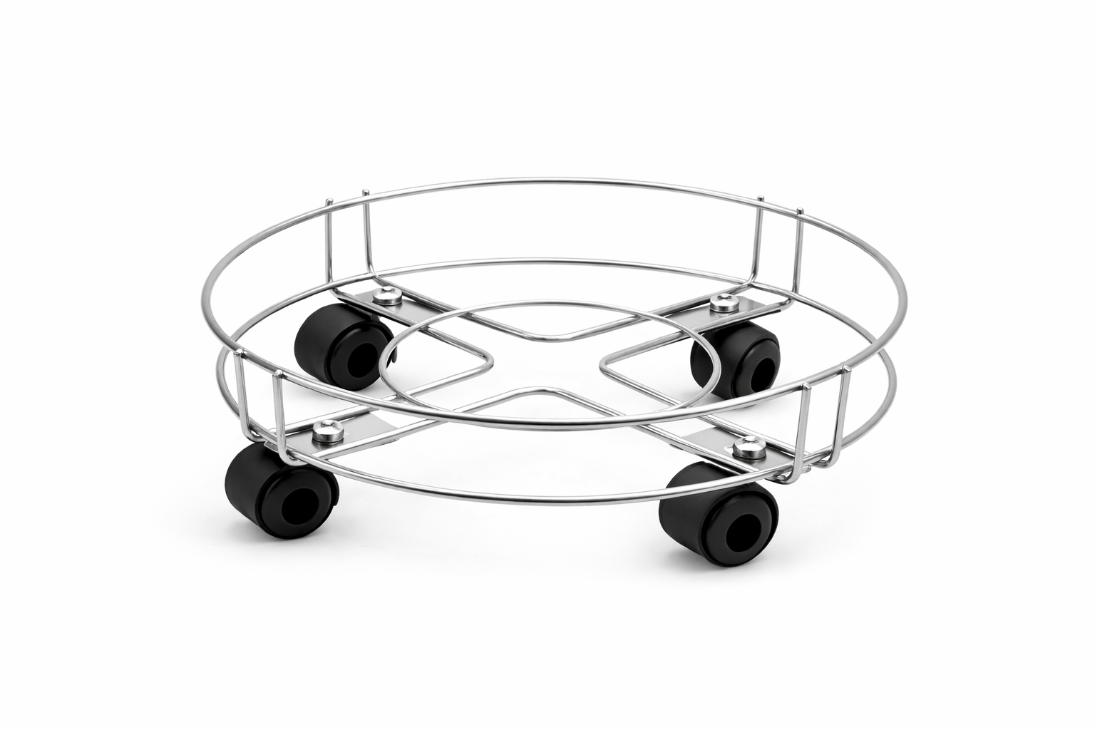 Equipped with 4 durable black caster wheels for easy movement of the gas cylinder in the kitchen.