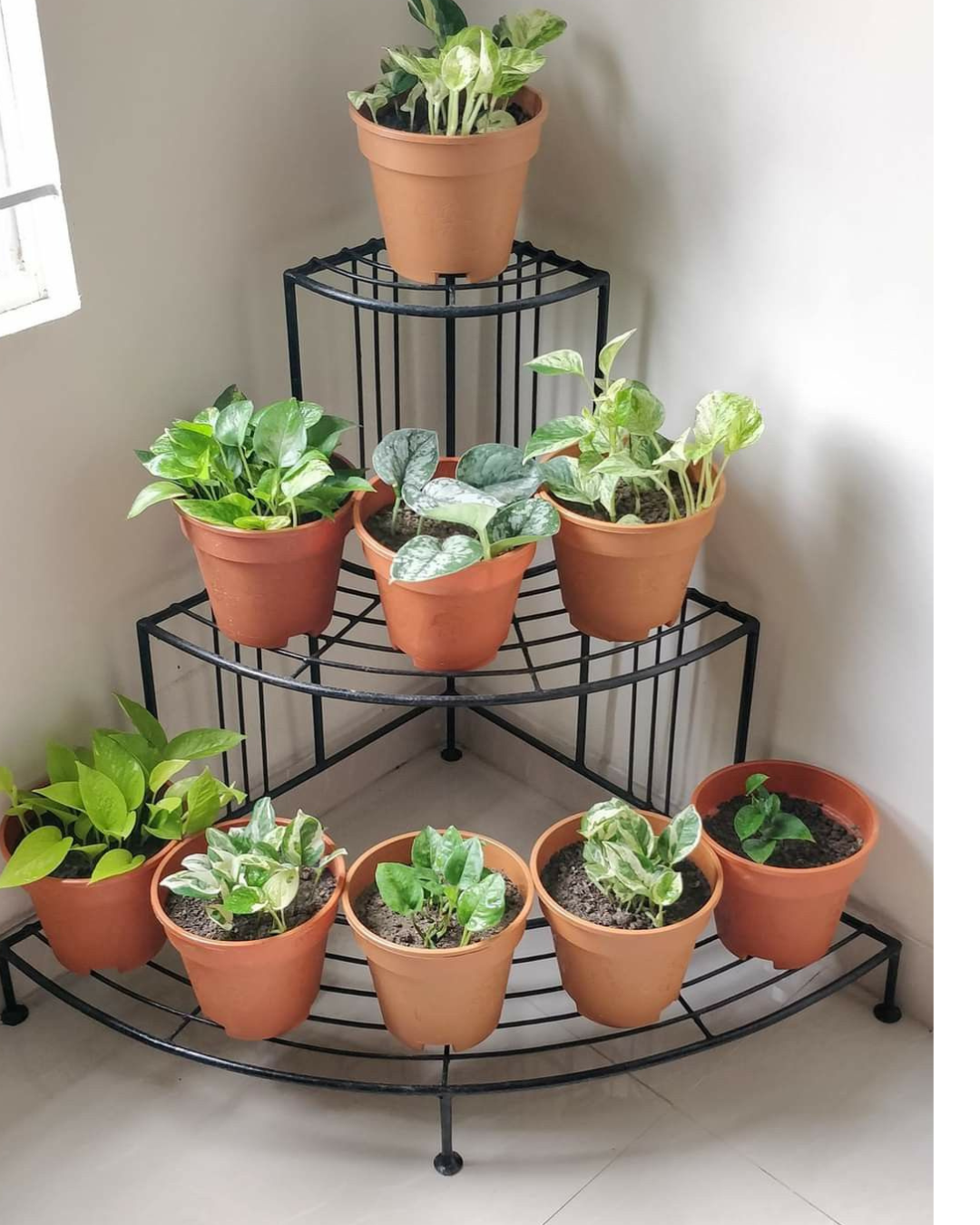 ✅ SPACE SAVING CORNER DESIGN – This 3-tier corner plant stand is specially designed to fit perfectly in corners, helping you organize multiple plants while saving space.